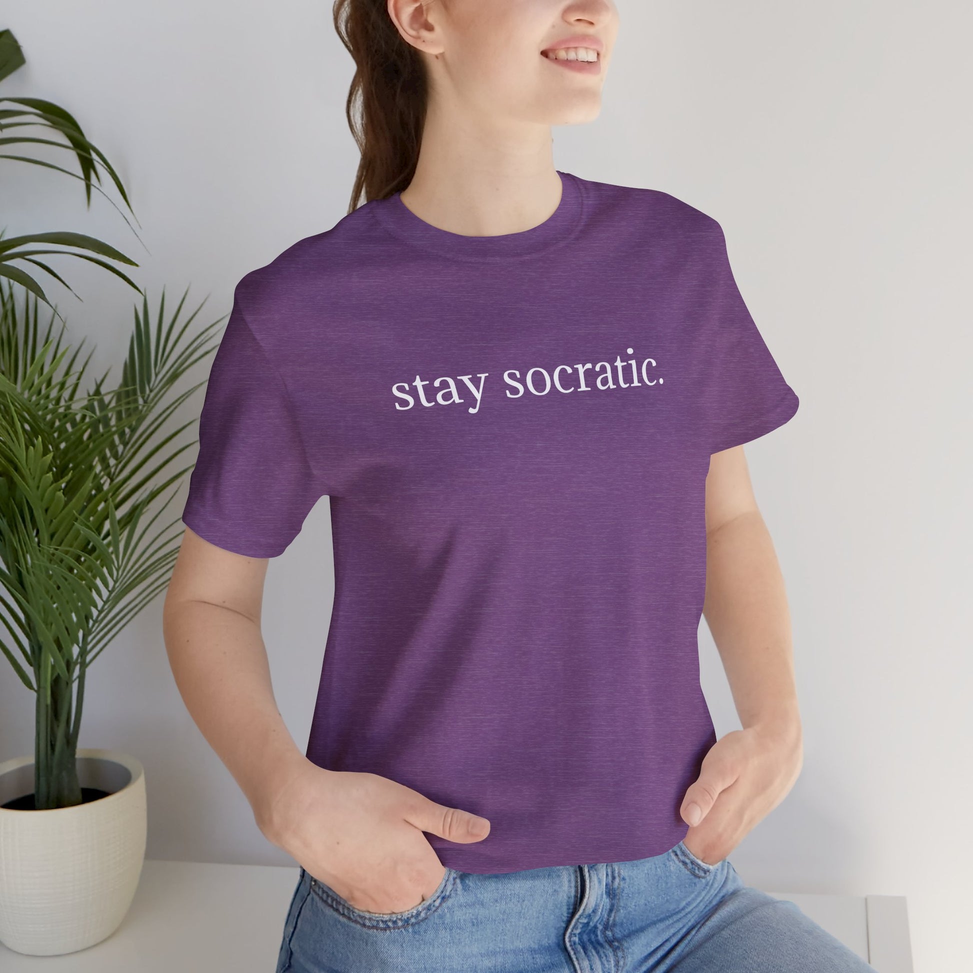 Stay Socratic with Falls Church on back Unisex Jersey Short Sleeve Tee